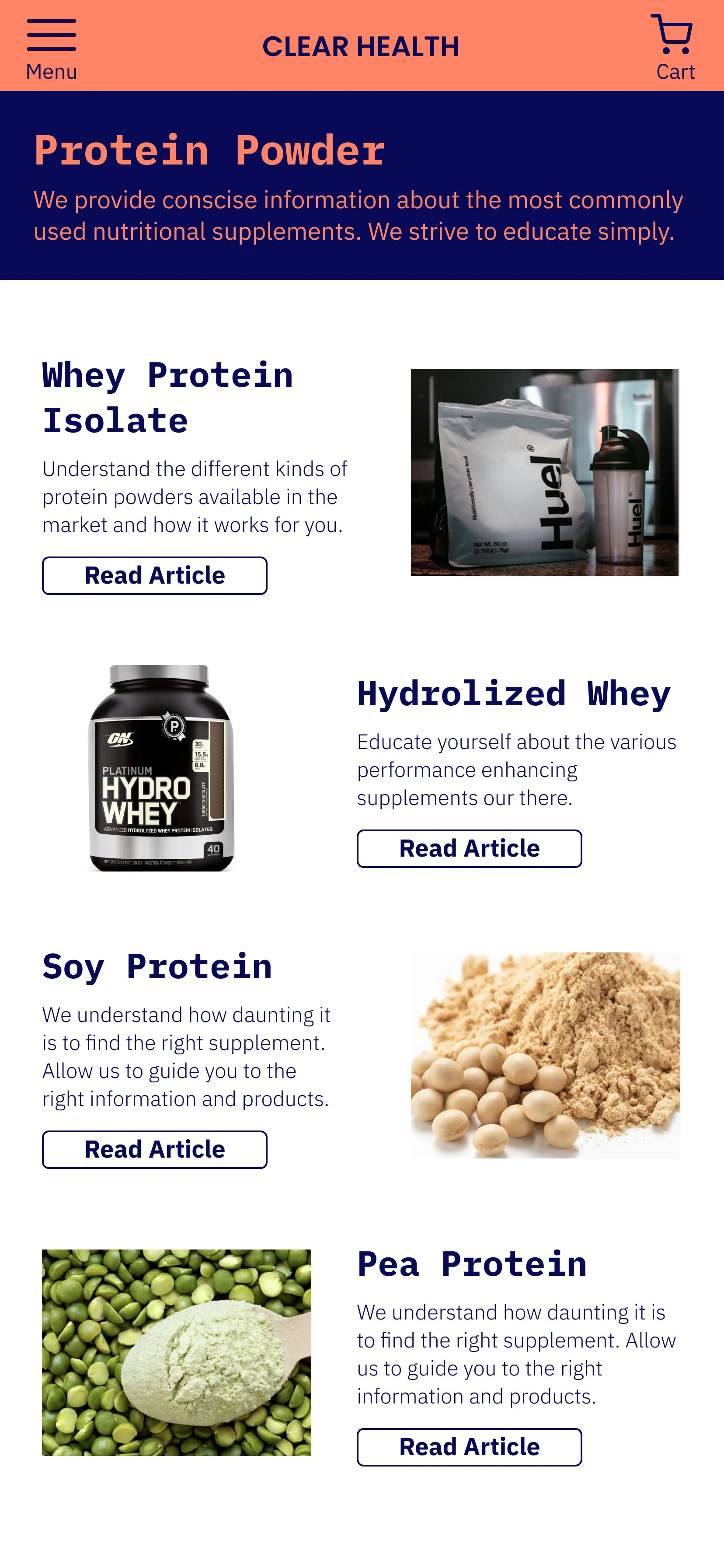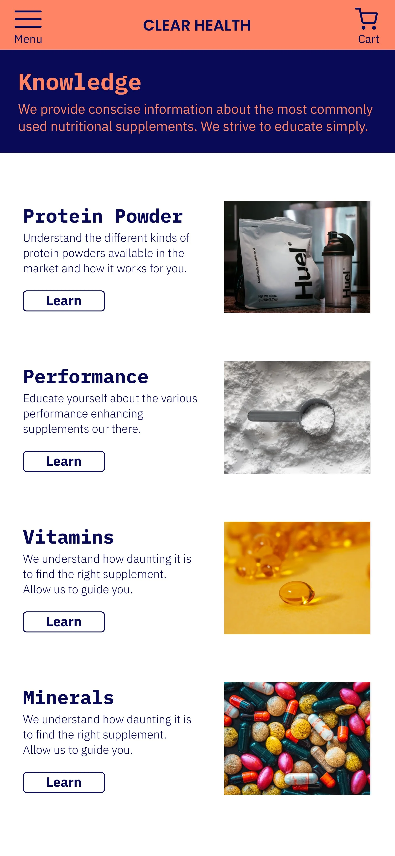 A dedicated page providing users with detailed information about nutritional supplements and their potential benefits will help to educate and inform users, reducing confusion and increasing trust in the product.