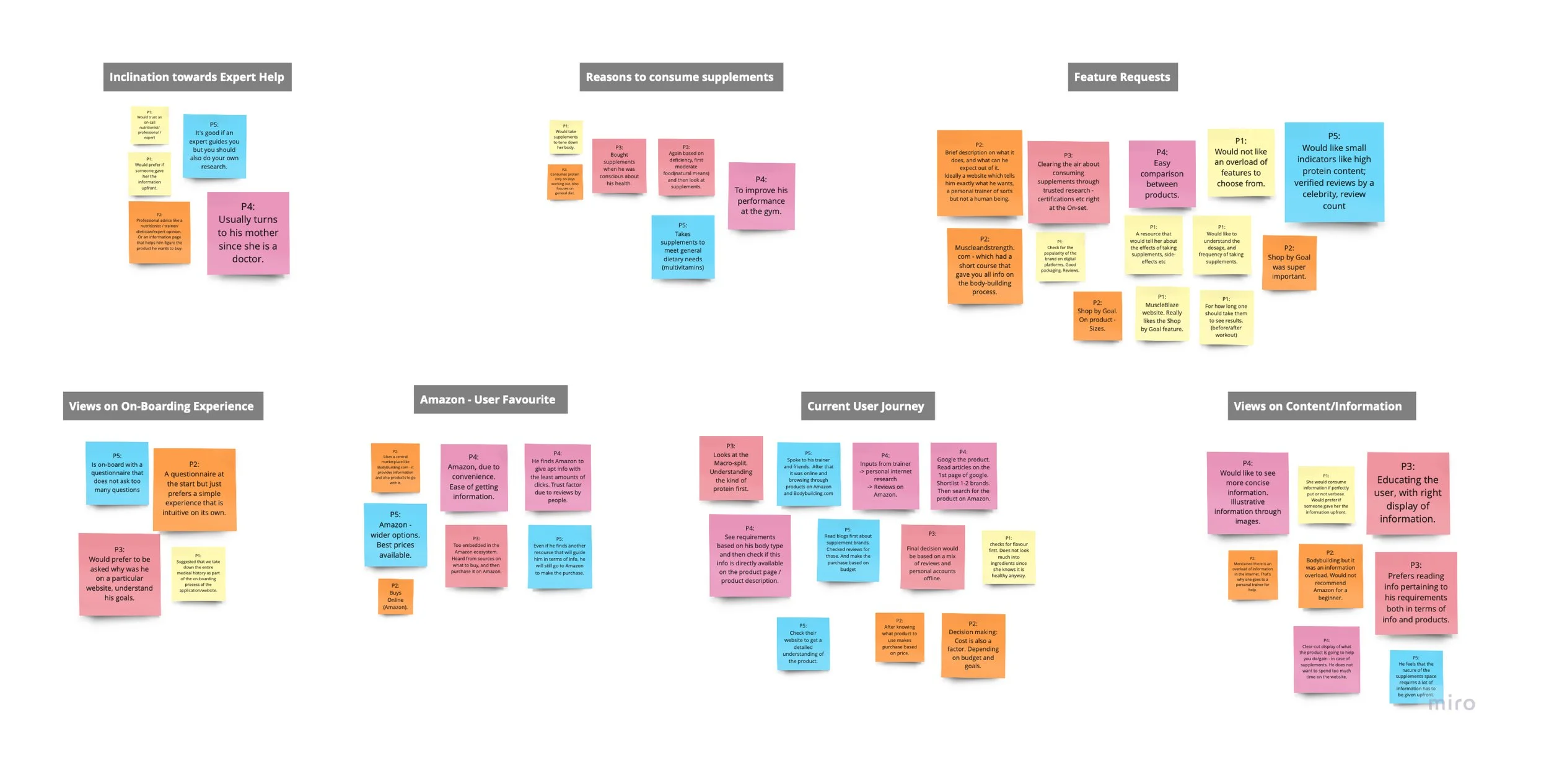 Survey: 25 respondents were recruited and their responses to the survey gave insights about their generic understanding of supplements and products features that aid buying decisions