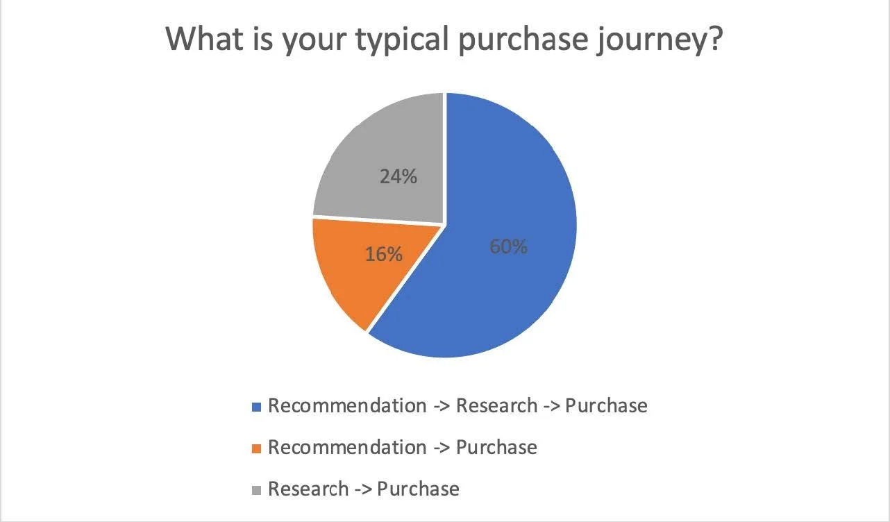Semi-structured interviews: with 5 participants who have had experience researching and buying nutritional supplements online. Experienced participants were chosen to be able to understand their journey from being novice buyers to fairly mature buyers of supplements.