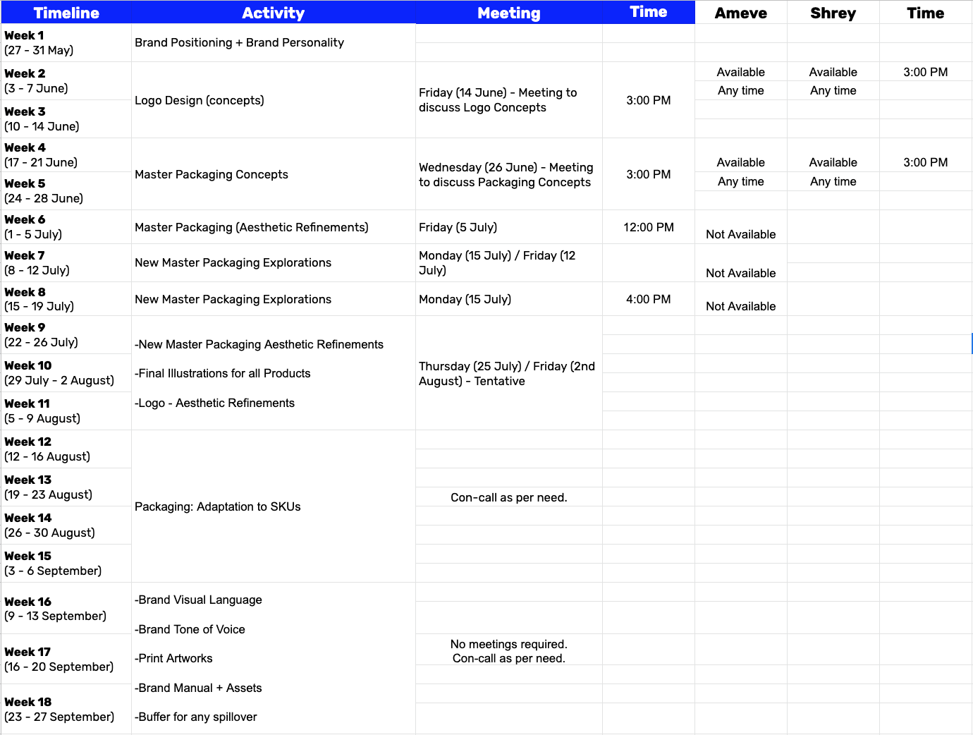 Being a comprehensive and extensive project, the tendency to miss out on details was high. I made sure every deliverable was broken down into fragments, which made it easy for both the client and my internal team to decipher. I had to meticulously plan, execute and deliver as we had to design and release artworks for 40+ SKUs, each with an illustration-heavy and content-focused packaging. Every milestone was dependent on completion of the previous deliverable, therefore timelines had to be strictly adhered to. I had to assign multiple designers and copywriters in addition to the creative director to successfully deliver.