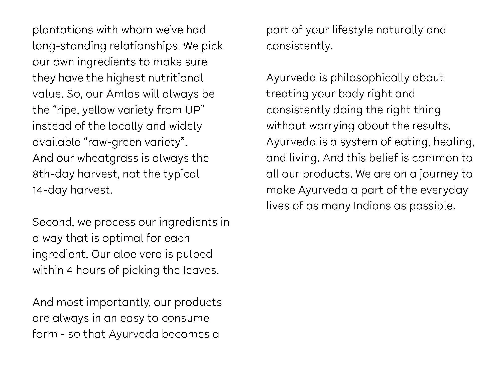 The brand story would serve as the springboard for everything the brand spoke about - on packaging, marketing, social media, newsletters, PR etc. So the story had to be more strategic than just a flowery prose. Working closely with the marketing team at Kapiva, we closed in on a set of pointers that needed to be covered in the story: