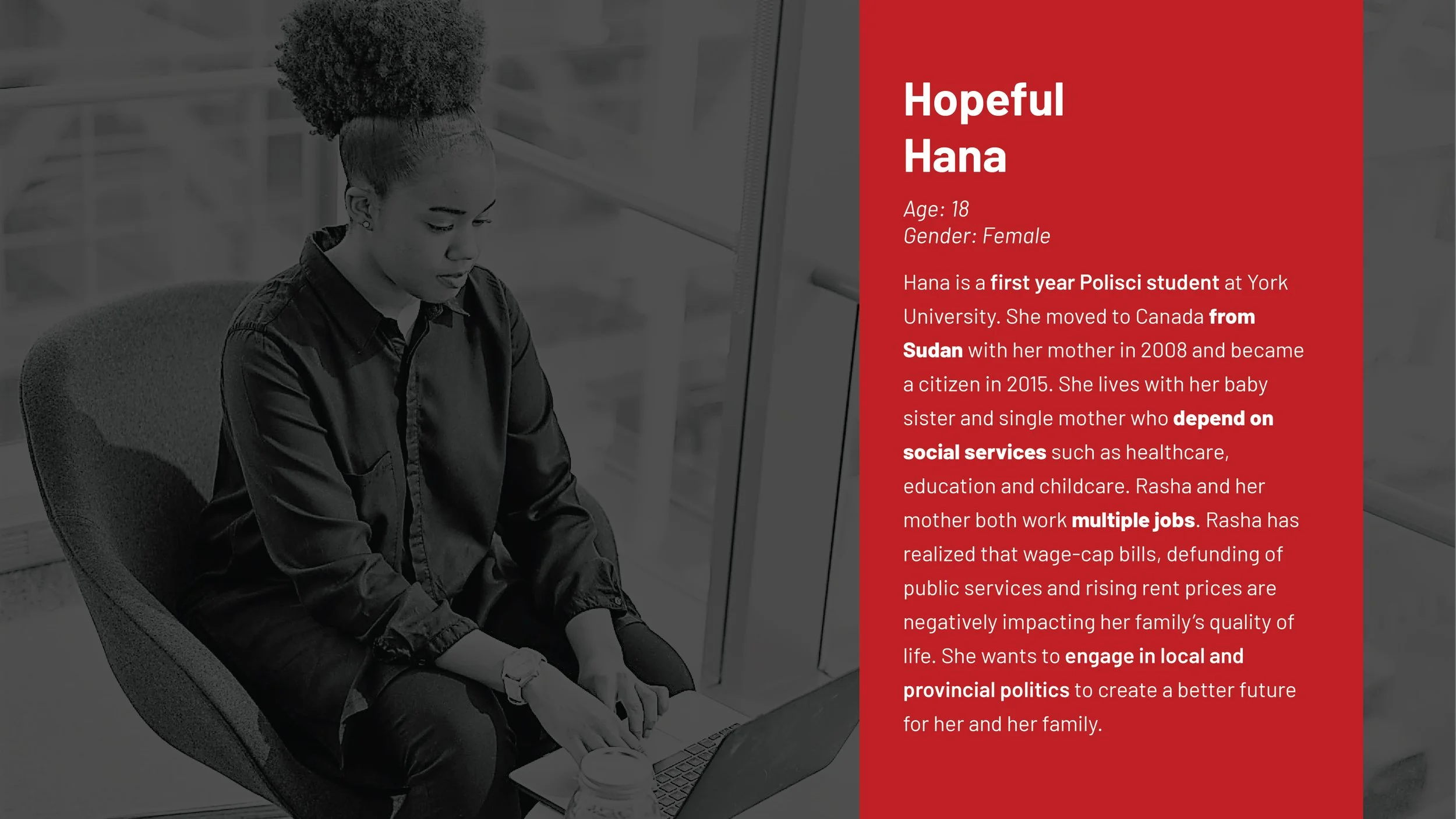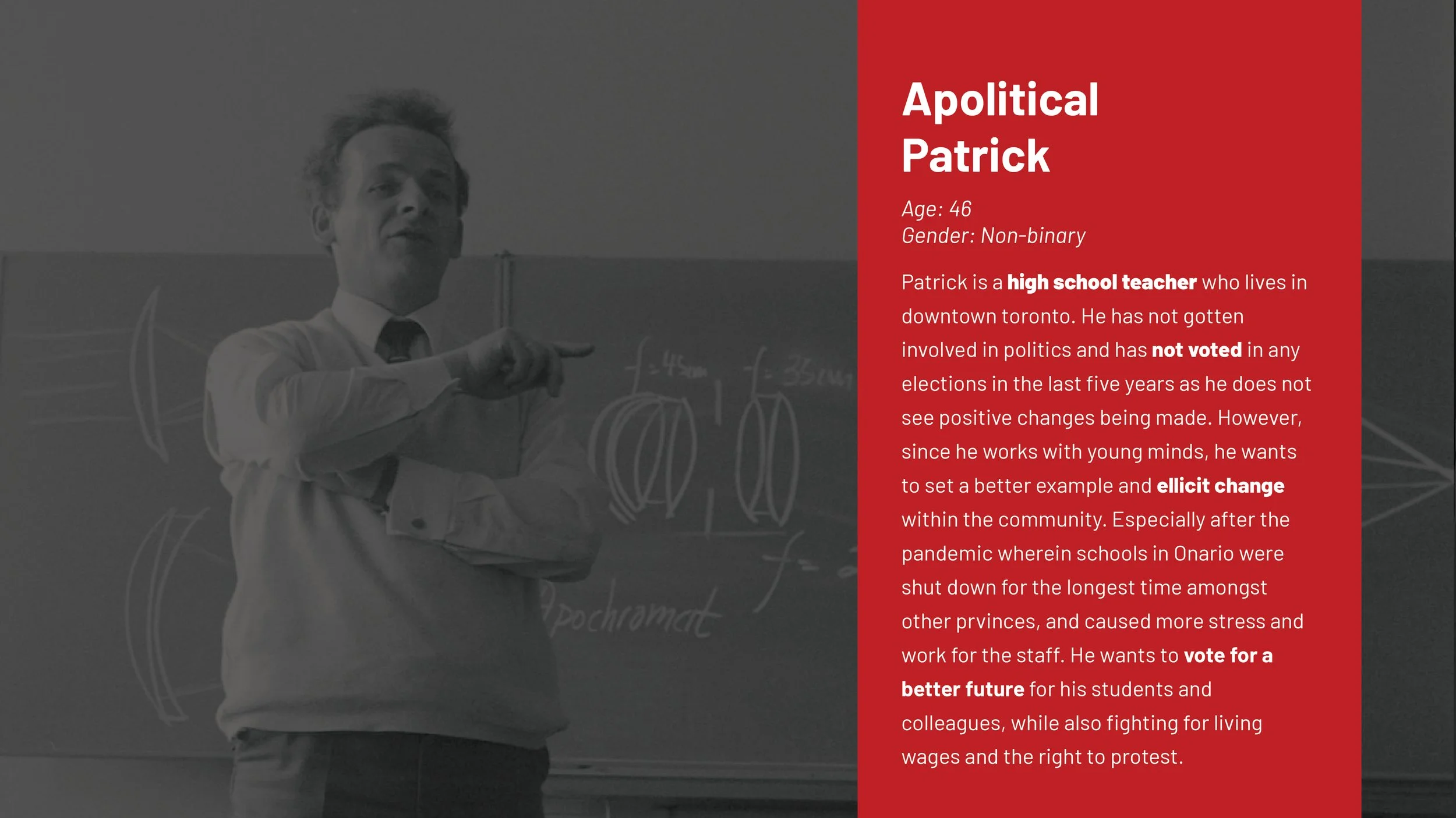 Through our research and interviews, we created 3 personas representing the working class, millennials and Gen Z who wished to be politically engaged and would eventually form our user base.